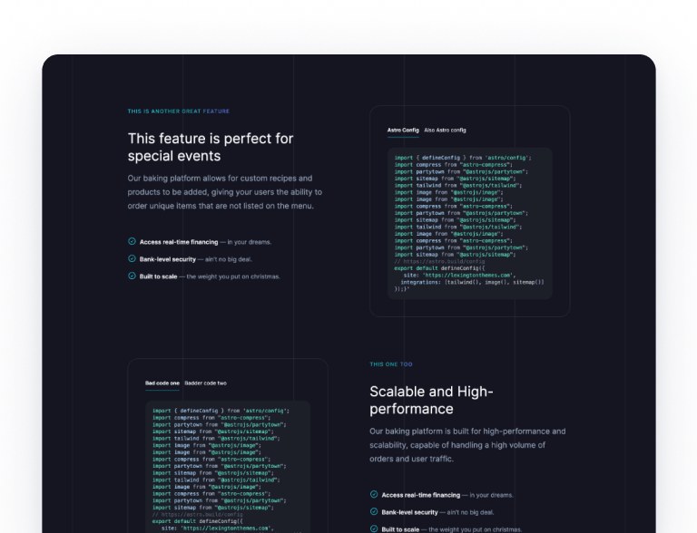 Navy is a light-mode SaaS template built with Astro and Tailwind CSS. Clean, structured layouts for startups and modern software products.